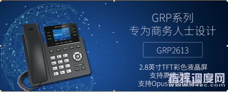 GRP2613是一款专为商务人士设计的企业彩屏IP话机,配备2.8英寸彩色显示屏,支持双千兆网口(内置PoE),支持3个SIP账号,6个双色线路,最高24个虚拟快速拨号按键/BLF在线监测按键,支持三方会议及丰富的SIP通话业务。GRP2613提供丰富的操作体验,支持Opus语音编码,高品质的语音质量是一款高性价比的商务型IP话机。