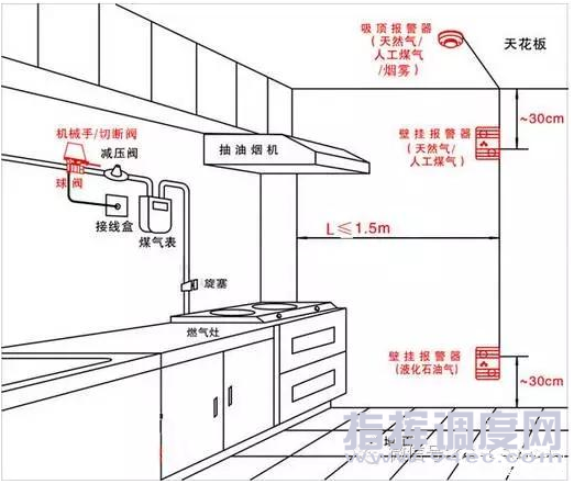(1)首先确定可燃气体与空气的比重,然后将报警器固定安装在距气源半径1.5M以内的合适位置:A.煤气,比空气轻,漂浮在高处;B.天然气,比空气轻,漂浮在高处;C.液化石油气,比空气重,沉积在低处;